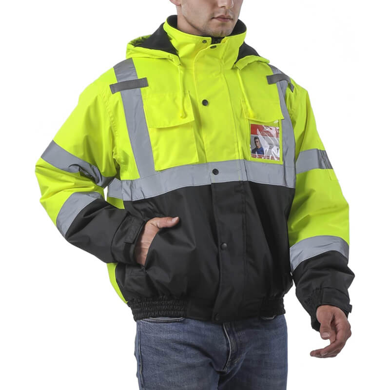 Winter Reflective Jacket Long Sleeve 300d Oxford Cloth Multiple Pockets Winter High Visibility Jacket