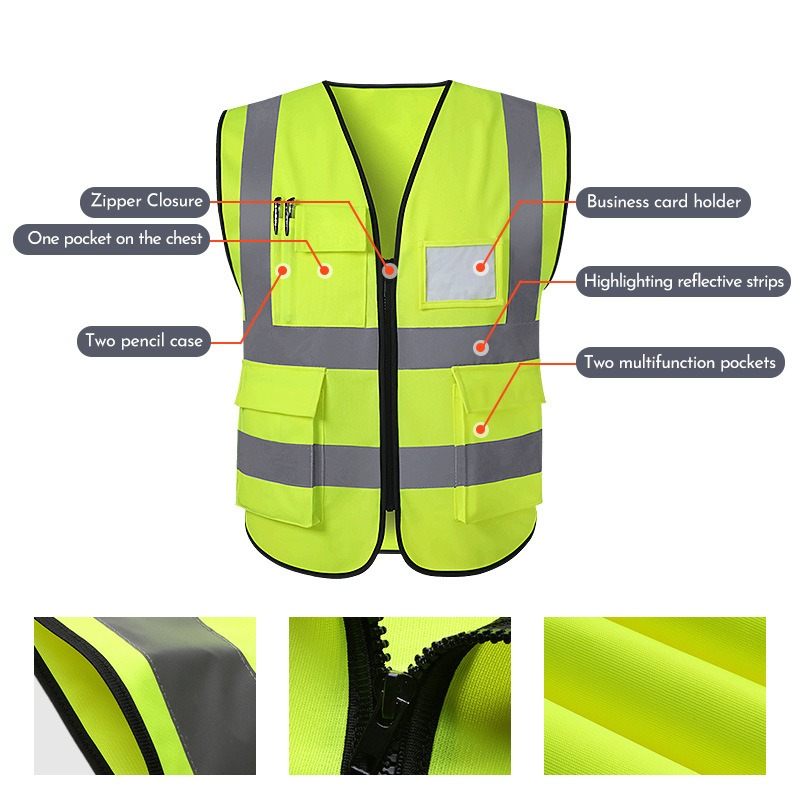 Wholesale Night Visibility Construction Vest Reflective Safety Vest with Pockets Lightweight Fluorescent Hi-Vis Reflective Vest