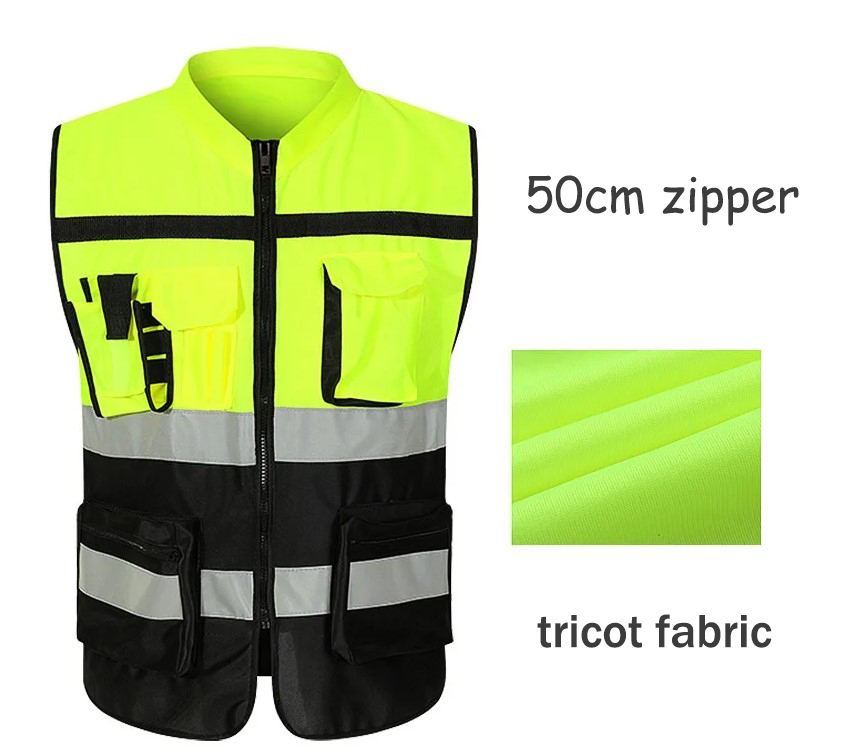 China Supplies High Visibility Reflective Vest Polyester Durable Long Zipper Custom Safety Vest with TC Bright Silver Reflective Strip