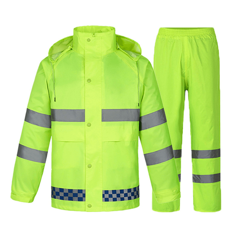 Hi Vis Clothing Fluorescent Safety Coat Raincoat Hooded Reflective Safety Jacket Waterproof Man & Women Safety Jackets