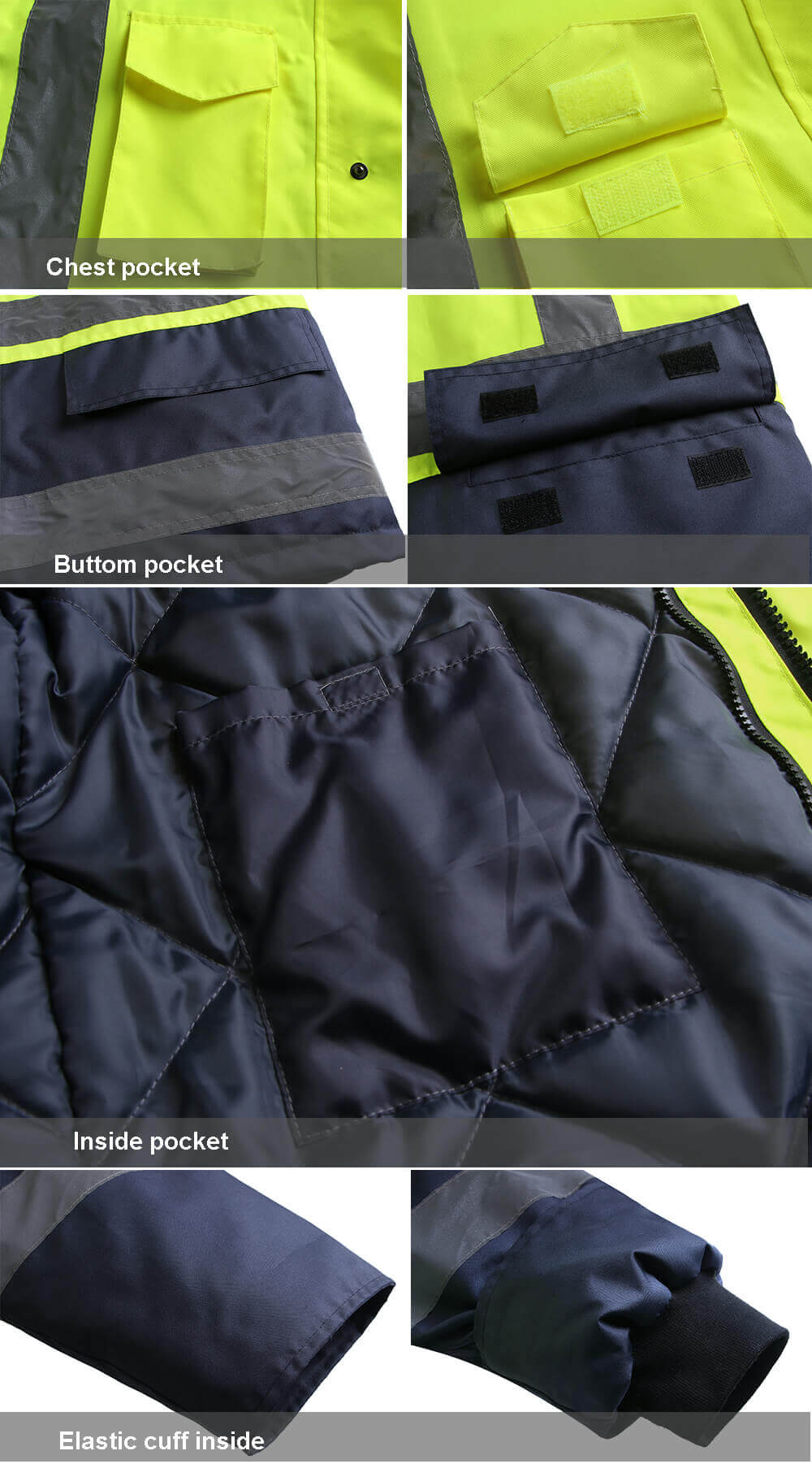 Hi Vis Clothing Man Protective Safety Winter Waterproof Long Sleeves Outdoor Reflective Safety Jacket