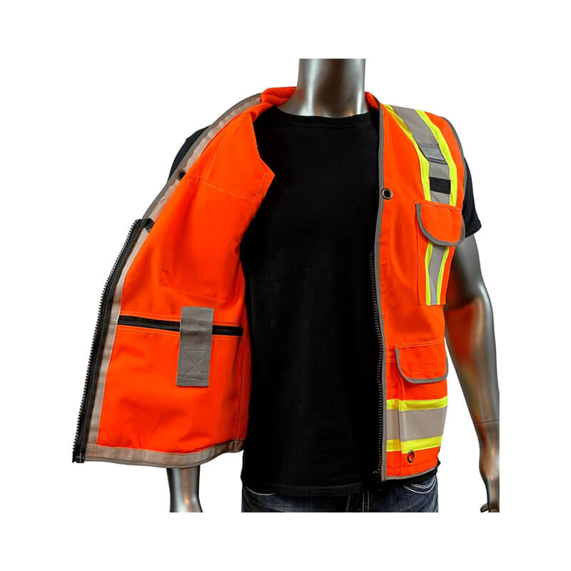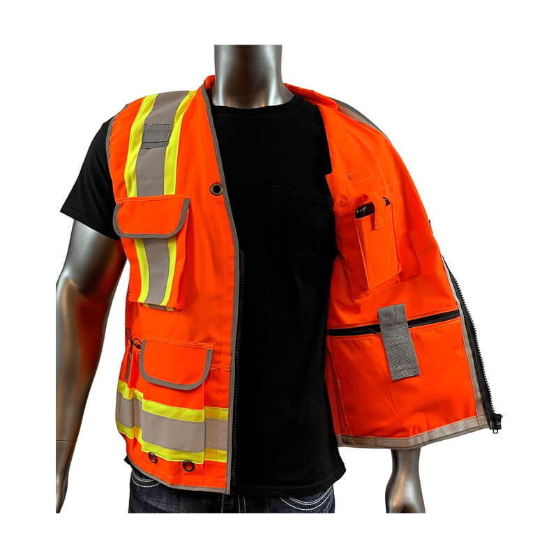 Orange Construction Vest Mens Class 2 Surveyors Safety Vest With Zipper Utility Pockets Premium Reflective Safety Vests