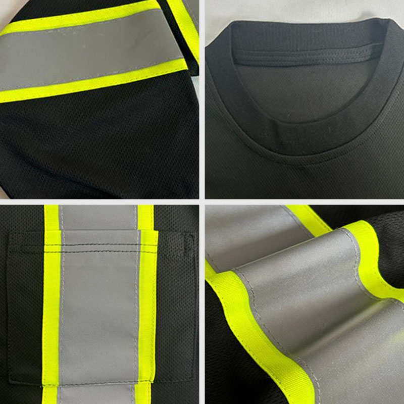 Hi Vis Clothing Black Safety Shirts Long Sleeve Breathable Bird Eye Cloth