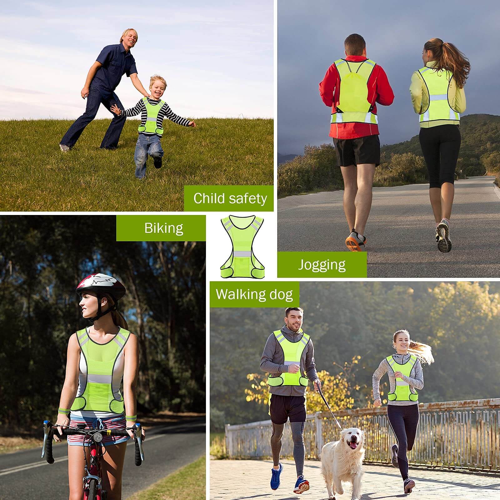 Reflective safety vests great for night running, cycling, dog walking, motorcycling, jogging, marathon, traffic safety & much more.