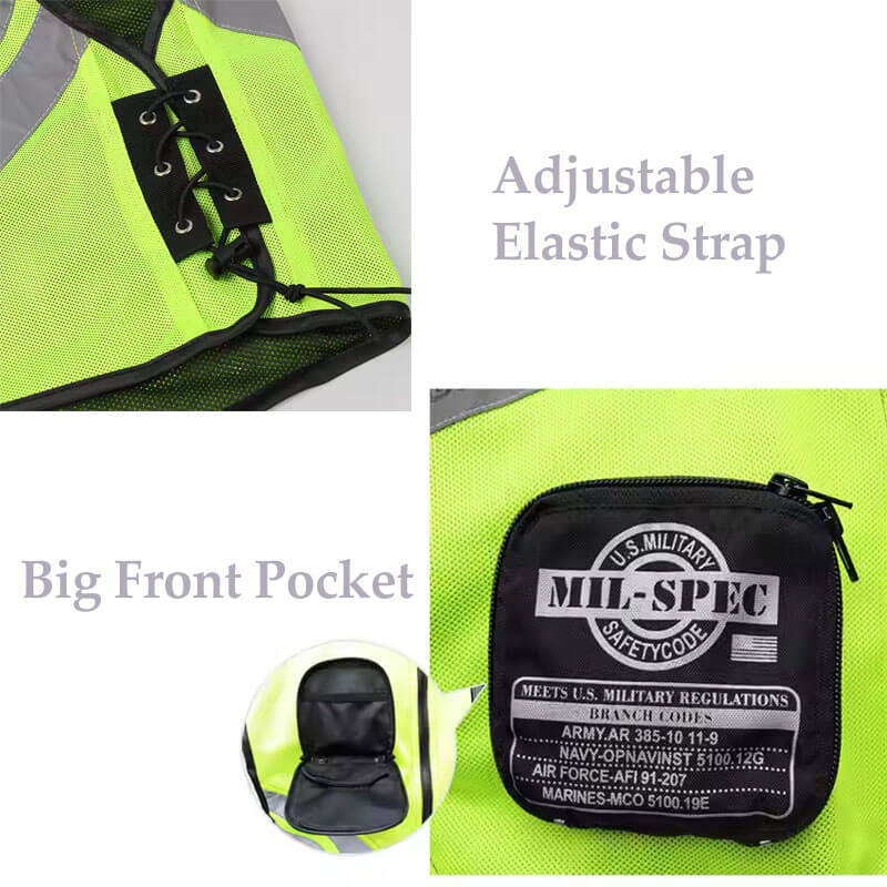 Designed for high visibility to keep you safe for Motorcycle, Running/Jogging, Bike/Bicycle Riding, Construction workers, Surveyors, Traffic Crossing Guard, Police, EMS, Security, Airports, ports, railways, warehouses, logistics, construction, traffic control, landscaping, exploration, surveying, emergency, rescue, and other fields.