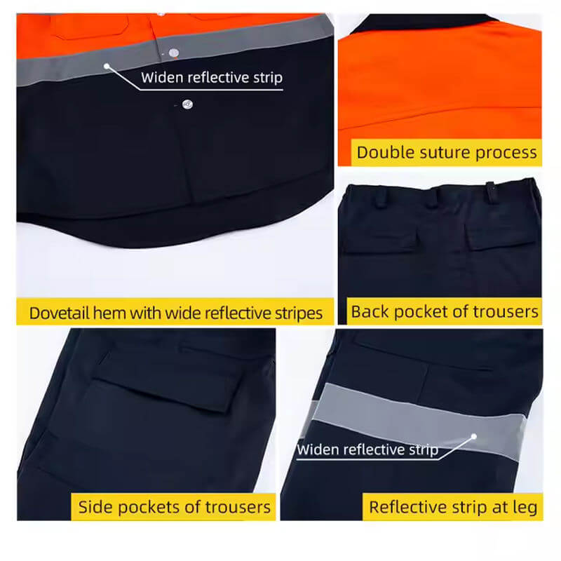 Customized Hi Vis Workwear Women and Men Breathable 100% Cotton Workwear Jacket & Pants with Multi-Pockets Work Clothes Safety Working Uniforms Suit